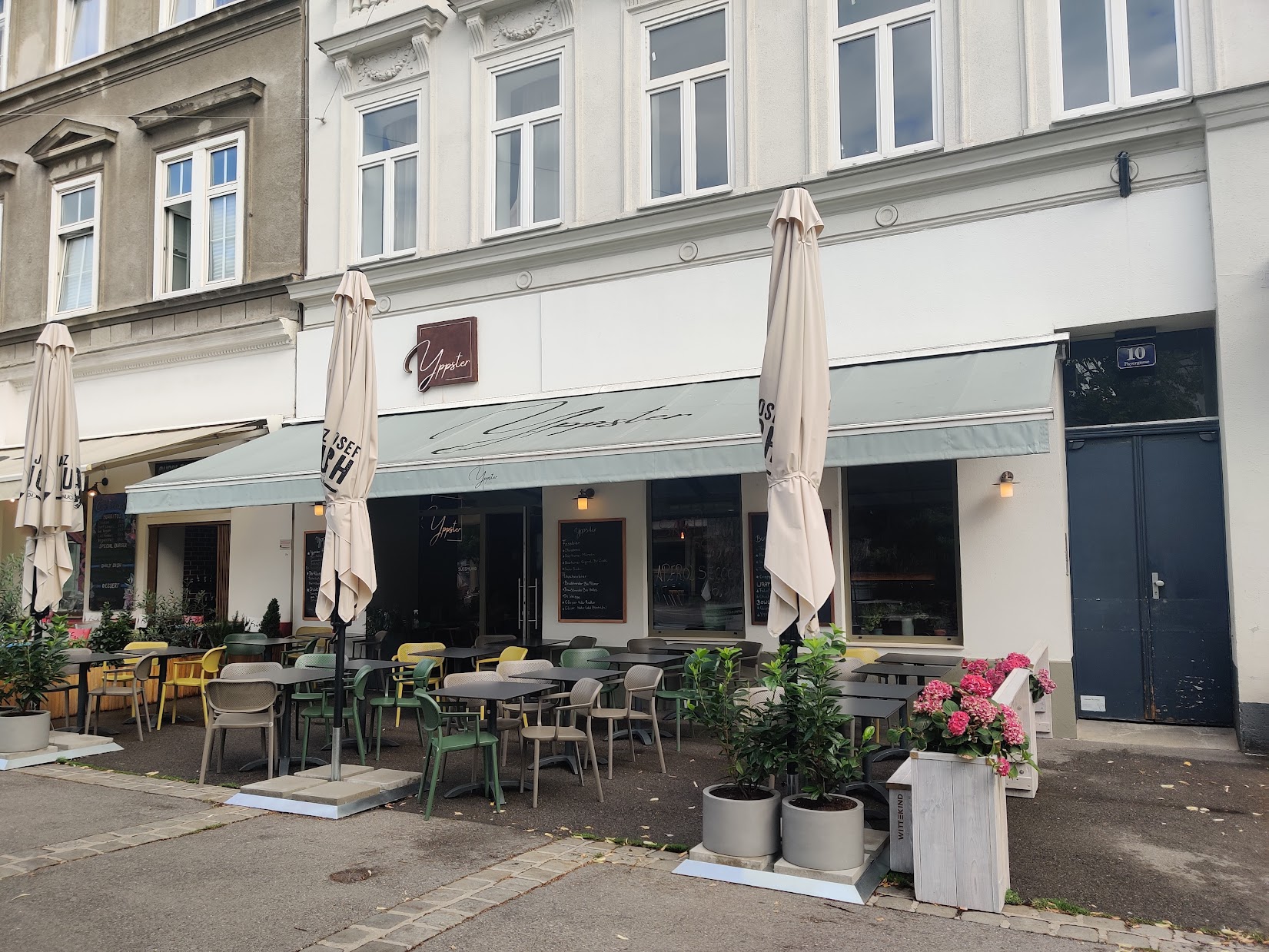Dank der Verkehrsplanung der Stadt Wien frühstücke ich derzeit bevorzugt entlang der U6 harhar. Heute war ich mit P. im Yppster beim Yppenplatz, wie immer unbezahlte Werbung. Wie der Name und die direkte Umgebung zum Brunnenmarkt schon suggeriert, handelt es sich um eine Art gentrifiziertes Cafe und so sieht es von außen aus: