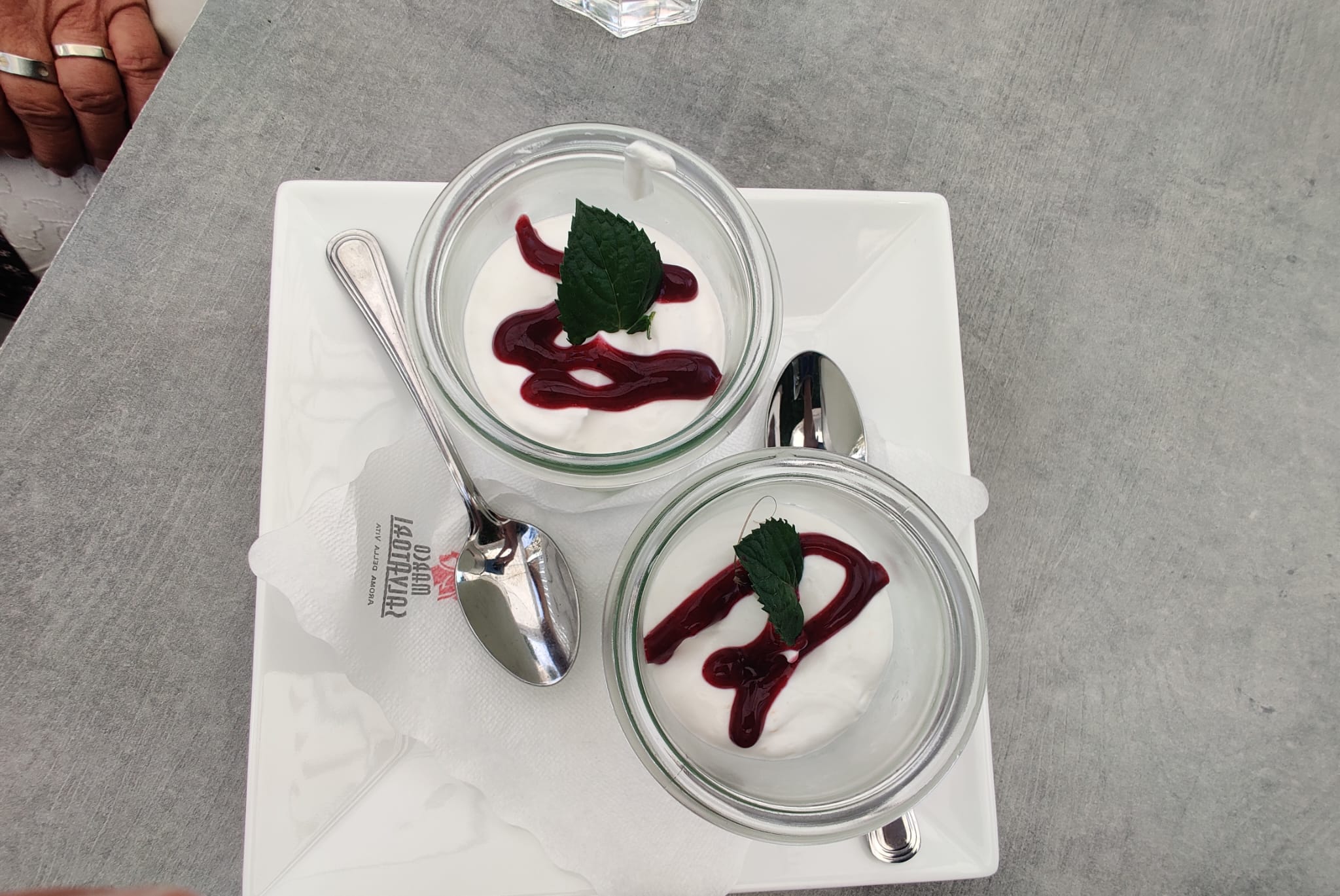Zu meiner Verteidigung muss ich aber sagen, ich hatte eine Jeansjacke an, es war nicht wirklich extrem warm. Danach gab es Topfencreme mit Früchten, das war der Jahreszeit trotzdem angemessener und es war so gut, dass ich es nicht gegen ein Mousse au Chocolat getauscht hätte und ich würde fast alles gegen Mousse au Chocolat tauschen.