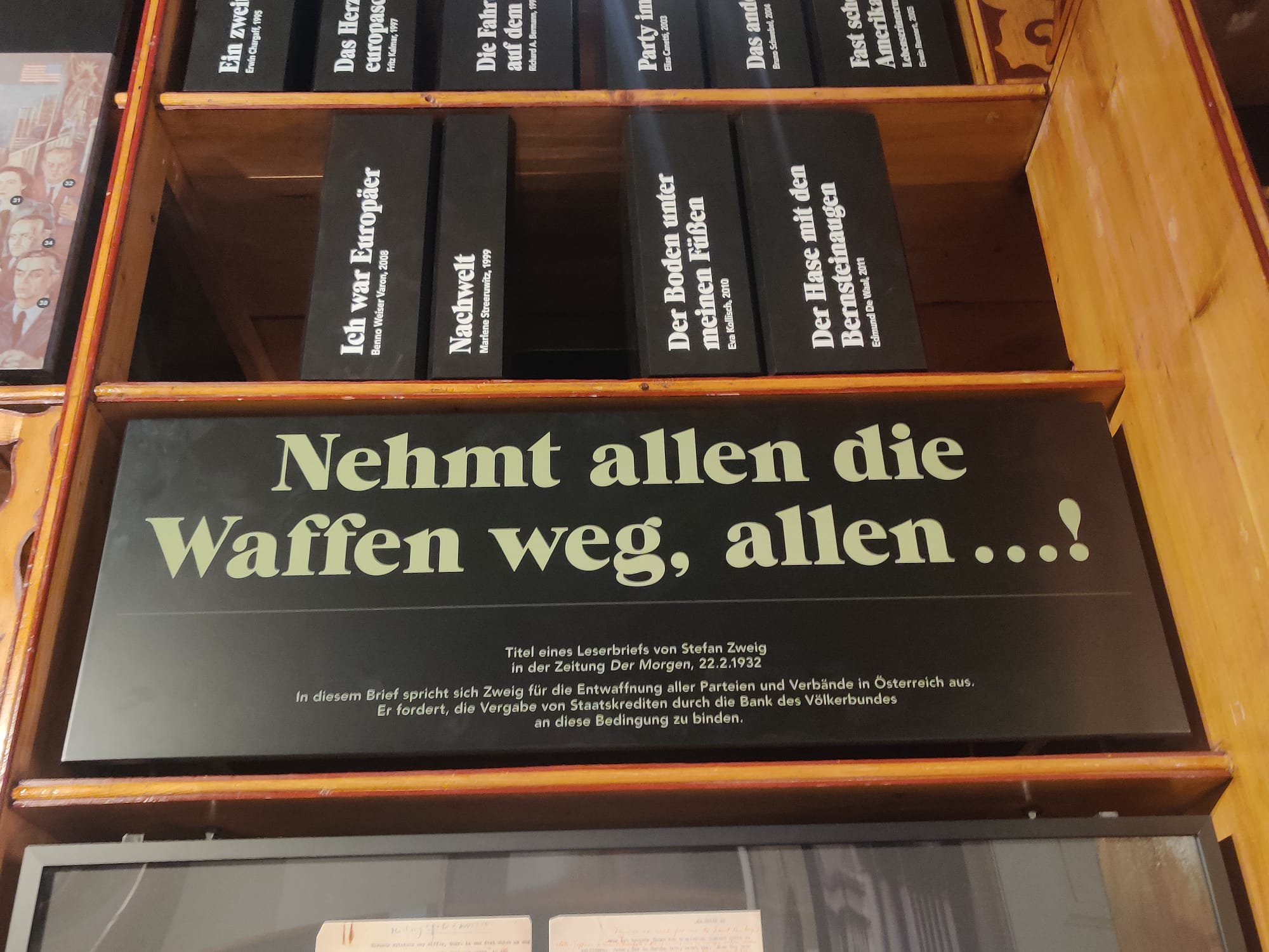 Nachdem ich darauf angesprochen wurde, noch ein bisschen Hintergrundinfo zum Literaturmuseum, weil es wirklich toll ist. Im dritten Stock ist immer die jeweils aktuelle Ausstellung zu sehen – schon dafür alleine kann man Stunden verwenden. Im ersten und zweiten Stock die Dauerausstellung zur österreichischen Literaturgeschichte. Im zweiten Stock von der Aufklärung bis 1918, im ersten Stock ab dann bis zur Gegenwart.