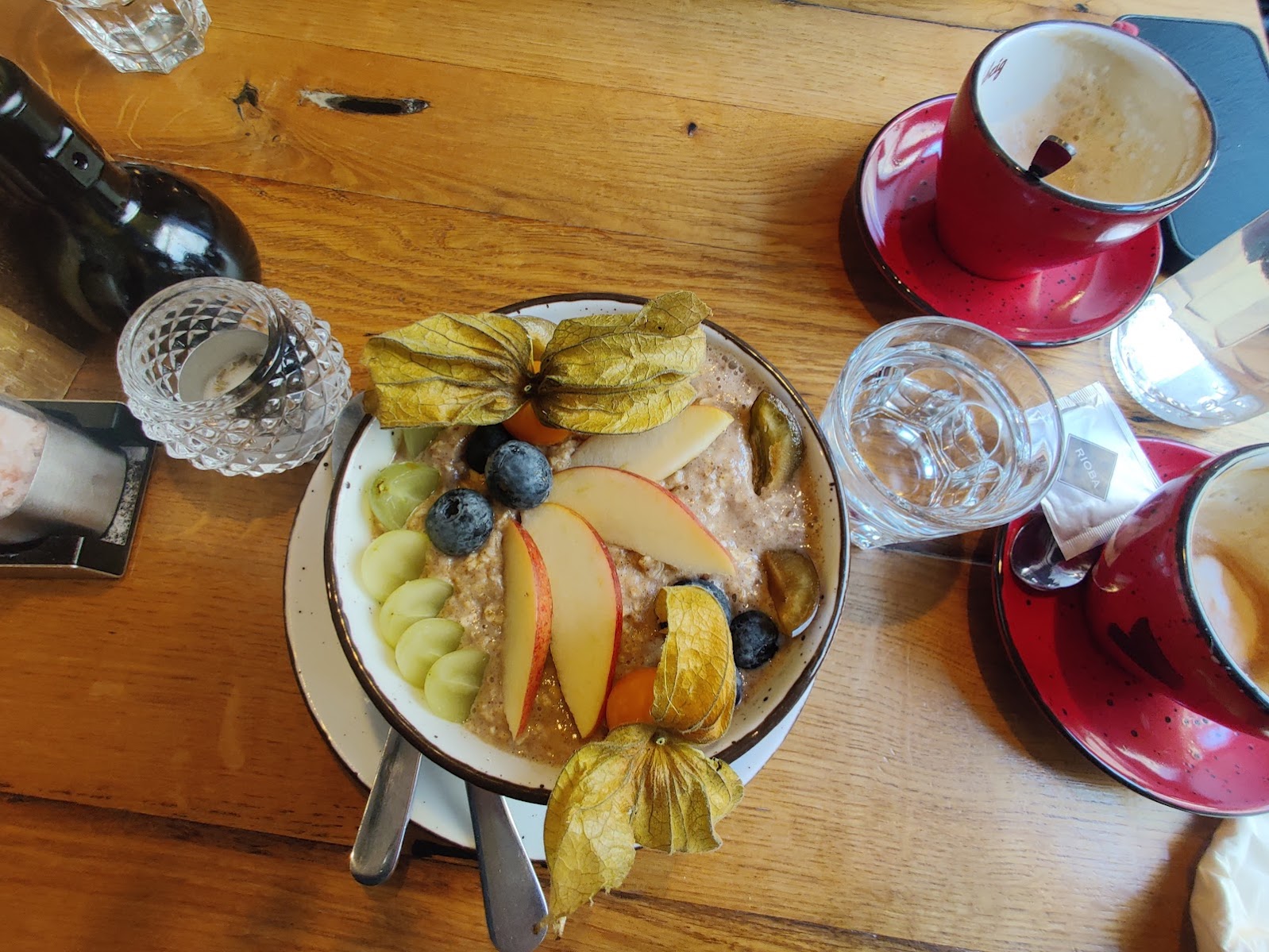 Als Nachspeise gab es Porridge mit Früchten, das wir uns geteilt haben:
