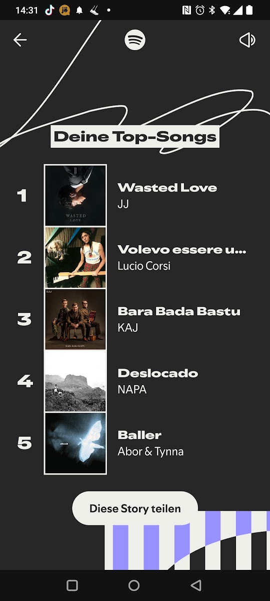 Heute wars endlich soweit. Auch wenn ich sonst so big brother überwachungsmäßige Dinge nicht mag, eine Ausnahme bilden die Spotify Jahrescharts, die mir sagen, was ich in den vergangenen zwölf Monaten so gehört habe. Wobei richtig überraschend ist es eh nie und so wundert sich auch wirklich niemand, dass meine Top 5 des Jahres 2025 allesamt ESC Songs sind, harhar.