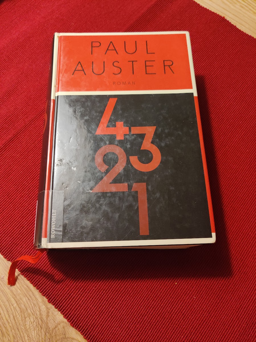 Aufgrund des Lesevergnügens am Wochenende habe ich mir heute gleich einen “neuen” Paul Auster Roman 4 3 2 1 aus der Bücherei ausgeborgt, schlappe 1200 Seiten für die Weihnachtsferien dann, harhar.