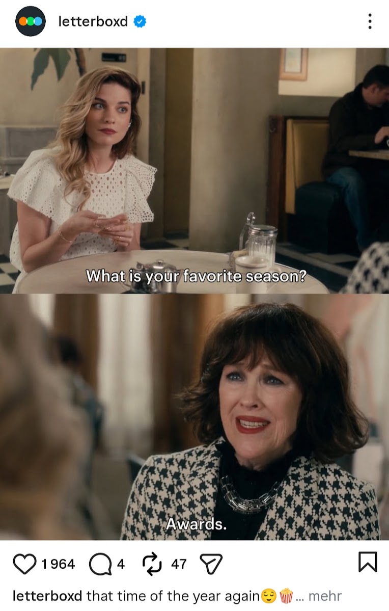 Die Chancen, dass sie nominiert wird, sind jetzt nicht wahnsinnig groß, das “Campaigning” für sie hat spät angefangen und sie ist auf keiner großen Prediction-Seite gelistet, wenn ich das recht überblicke. Andererseits hat The Secret Agent gerade ein enormes Momentum. Und in der Kategorie Beste weibliche Nebenrolle gibt es nur zwei sichere “Fixstarterinnen”, nämlich Teyana Taylor (One Battle After Another) und Amy Madigan (Weapons), wobei ich hoffe, dass Inga Ibsdotter Lilleaas (Sentimental Value), auch dabei sein wird, meine Lieblings-weibliche-Nebenrollen Performance dieses Jahr. Jedenfalls ist es aber eine Kategorie, die relativ volatil ist, in den anderen Kategorien sind meistens mindestens vier Plätze schon “sicher”.
