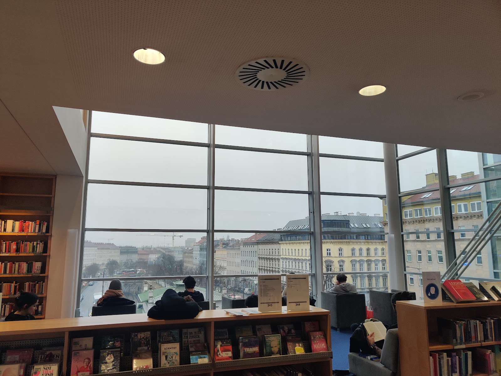 Ich habe ja mal vor zwei Jahren probiert, in der Nationalbibliothek zu schreiben, aber das hat nicht so ideal funktioniert, warum weiß ich nicht, als Studentin war ich öfters dort. Heute habe ich die Hauptbücherei am Urban Loritz Platz ausprobiert und war der Meinung, dass es dort kaum funktionieren wird, obwohl es recht viele Schreibplätze gibt – die heute auch fast alles belegt waren. Aber siehe da, es war ur super.