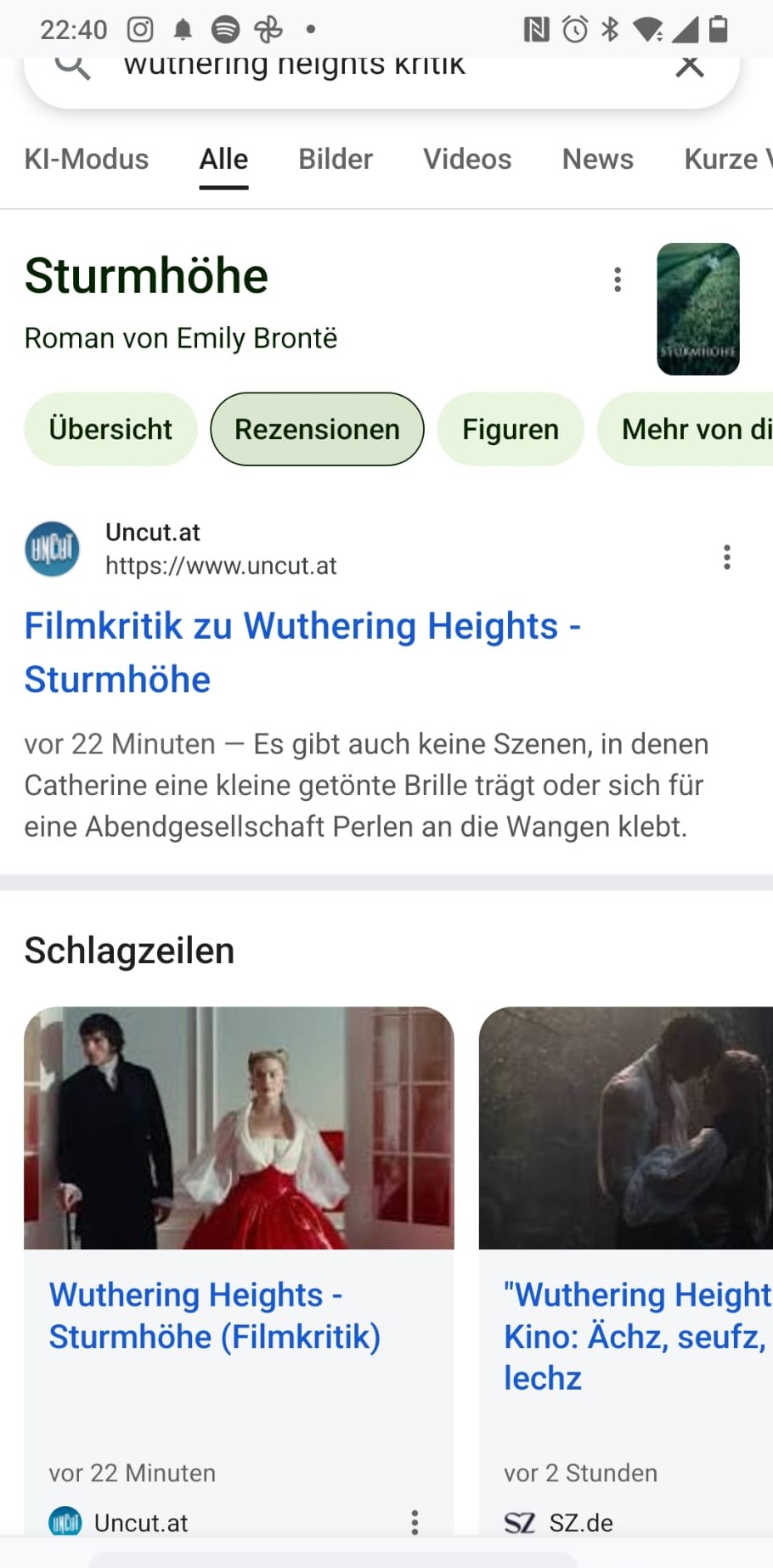 Wenn man “Wuthering Heights Kritik” bei Google eingibt, sieht man am Montagabend um 22.40 das: