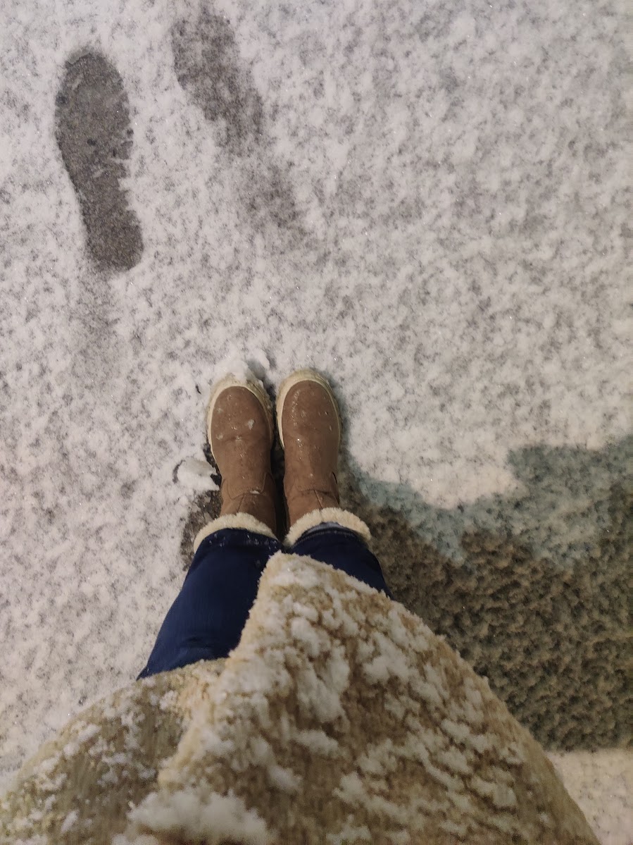 Ich hab mich einerseits sehr über den Schnee gefreut, es ist schön im Dunklen bei Schneegestöber, ein bisschen magisch sogar, Gedanken an jemand, immer.