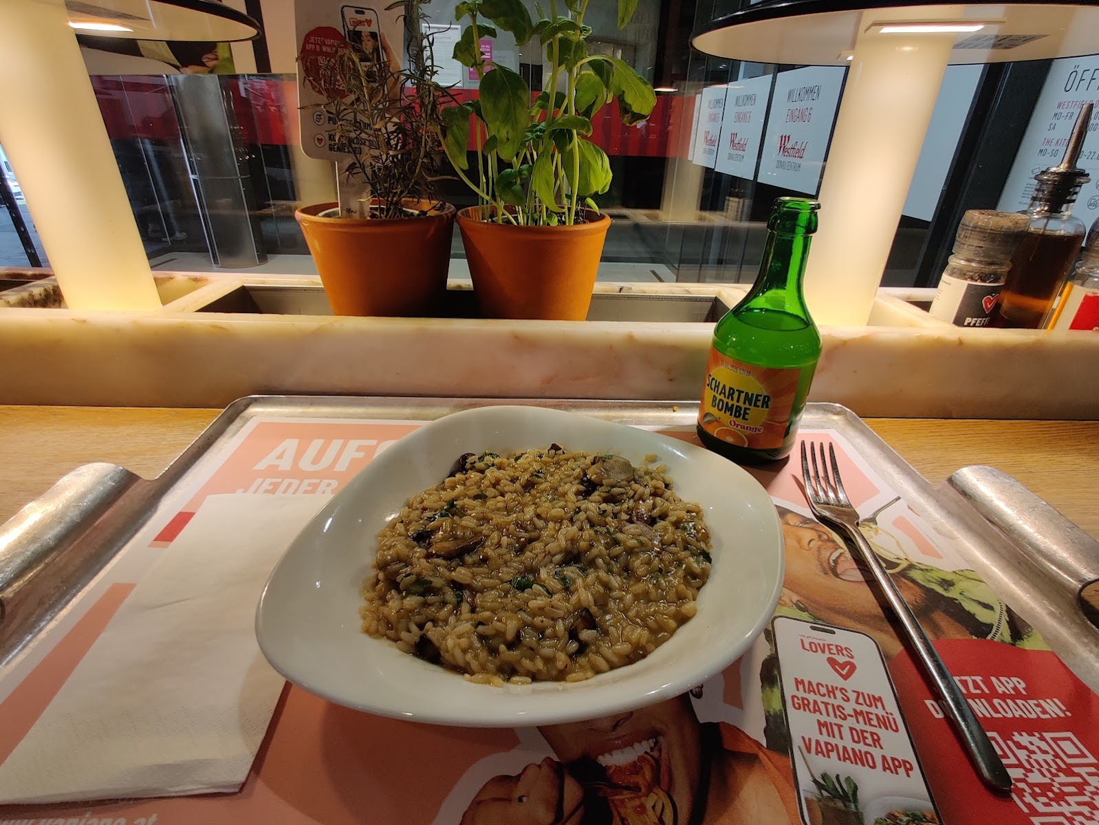 Zuerst arbeiten (kann man aber auch weglassen), dann ein spätes Mittagessen bei Vapiano (alles folgende unbezahlte Werbung)
