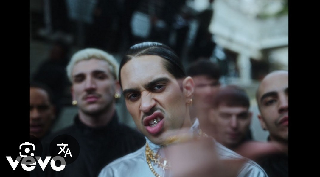 Das Interessante an Tuta Gold ist unter anderem das Video. Denn Mahmood hat einen arabischen Vater und ist homosexuell. In dem Video inszeniert er sich aber als, naja sagen wir Mann der Straße, mit seinen Kumpels, er trägt naja, sagen wir Streetwear und Goldzähne und irgendwie flirtet ein bisschen mit dem Klischee des toxischen Talahons – so ich habs geschrieben; was natürlich durch seinen Background alles doppelt bricht. In dem Video kommen außerdem leicht brutalistische Plattenbauten und aber auch Kühe vor, die dort grasen. Ich weiß nicht warum sie das tun, aber ich finde es interessant.